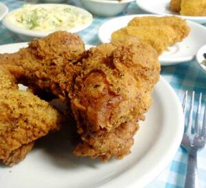 Served with fries and roll. There is fried chicken fried catfish ribs meatloaf smothered pork chops and I believe a few other entrees. MDears Bakery Bistro.